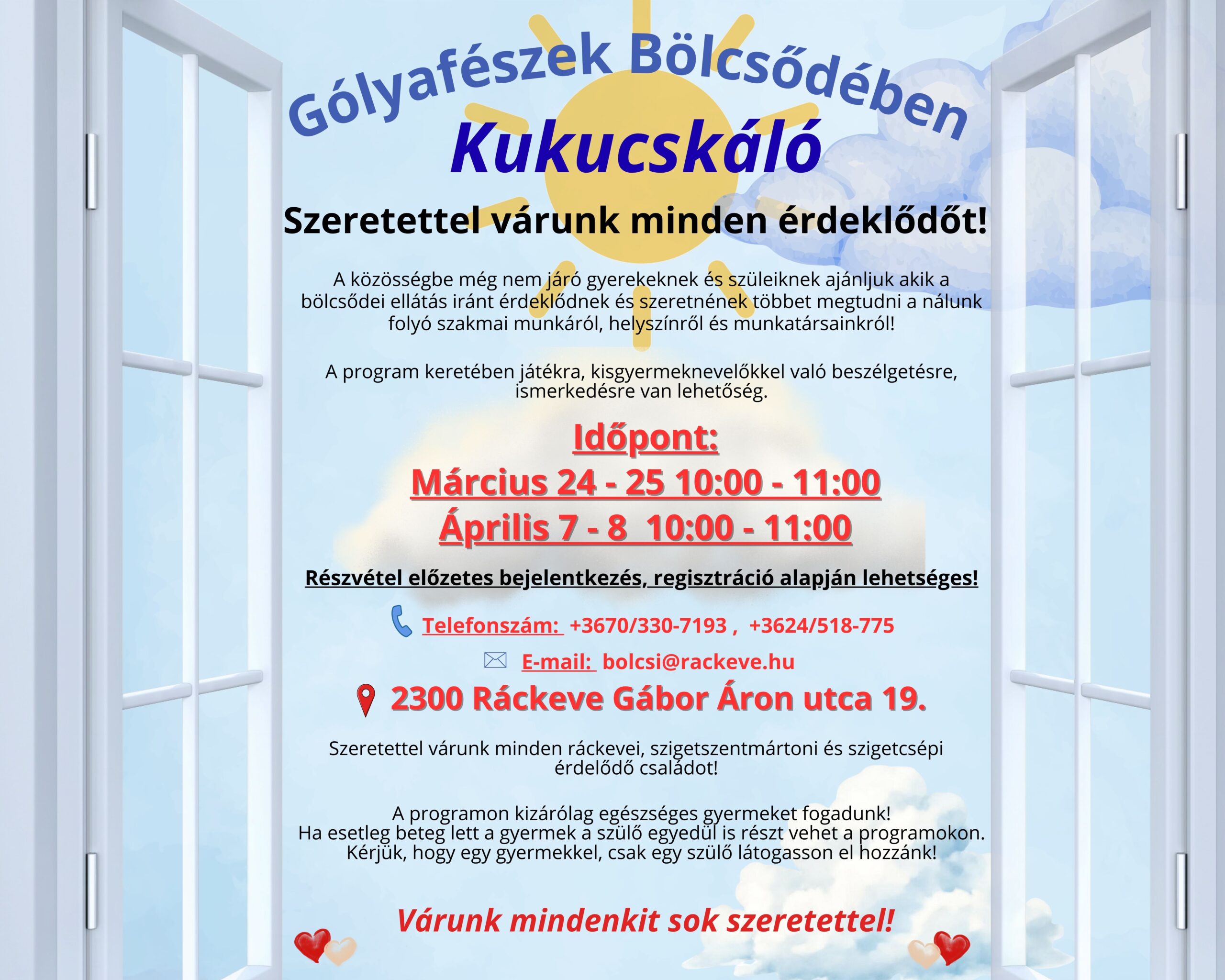 RÁCKEVE SZÍVÉBEN A GÓLYAFÉSZEK ALATT VÁRJA A LEGKISEBBEKET BÖLCSŐDÉNK!